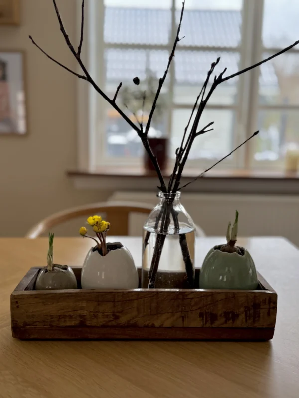 Vil du gerne lave din egen forårsdekoration? Med denne skønne DIY-pakke, kan du nemt selv lave din egen skønne forårsdekoration. Pakken indeholder alt du skal bruge: En trækasse, æggevaser til at plante i og en glasvase – Til afklip fra din have (blomster eller grene). Nemt, hyggeligt og lige til. Perfekt til dig, som synes det er hyggeligt at være kreativ, men som nogle gange mangler ideerne – eller til dig, der gerne vil slippe for at finde alle delene selv. Det bedste af det hele? Du kan nemt bruge alle tingene igen til at lave en ny dekoration.